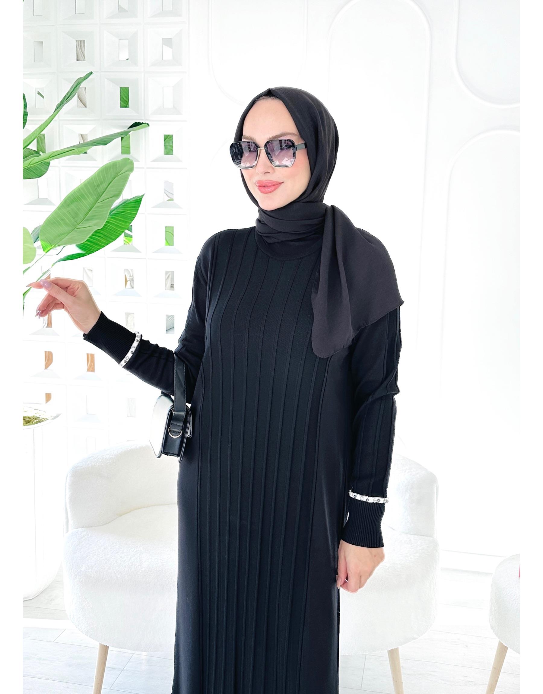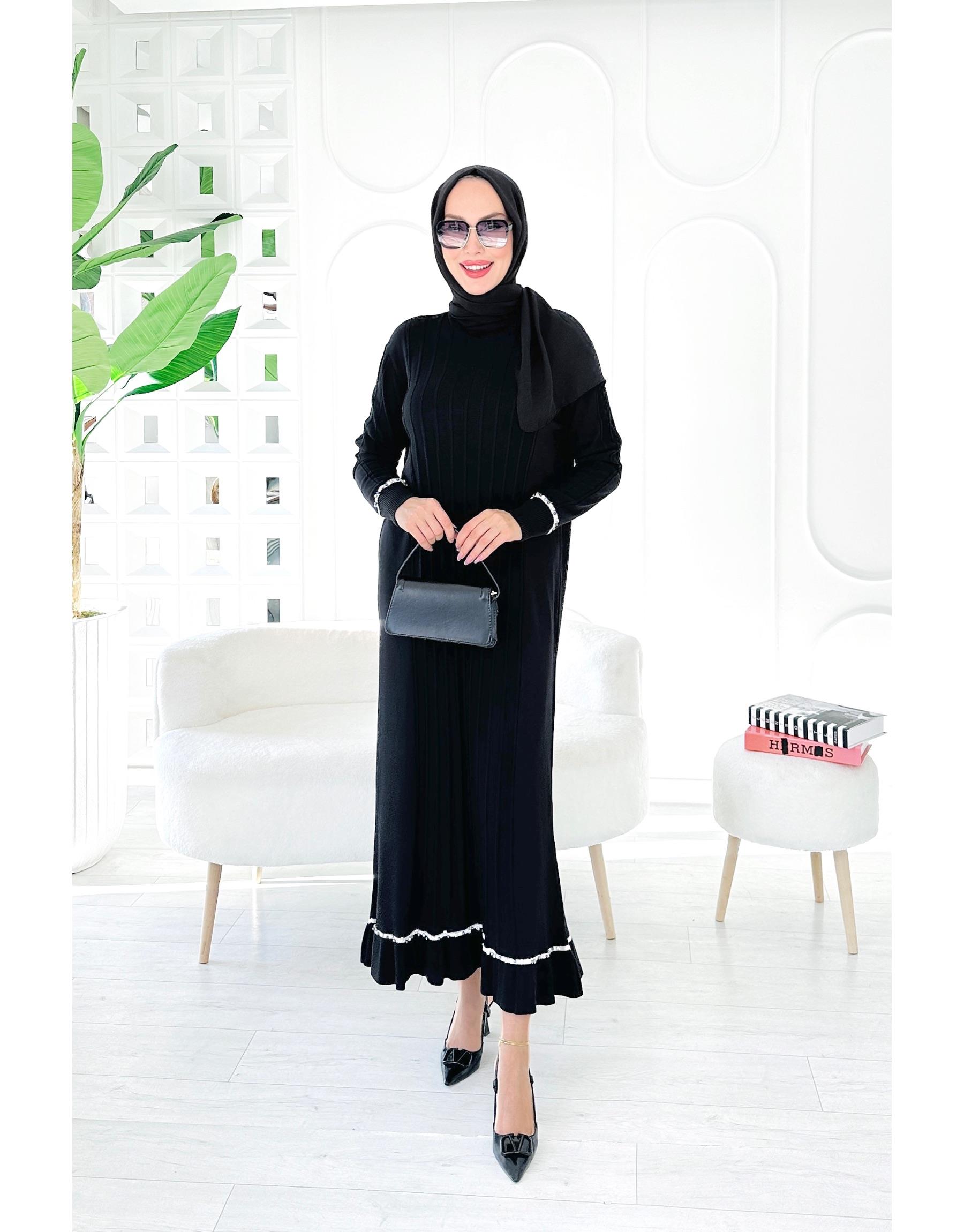 ALİCES %100 PAMUK İP BÜZGÜLÜ TRİKO HIRKA Siyah
