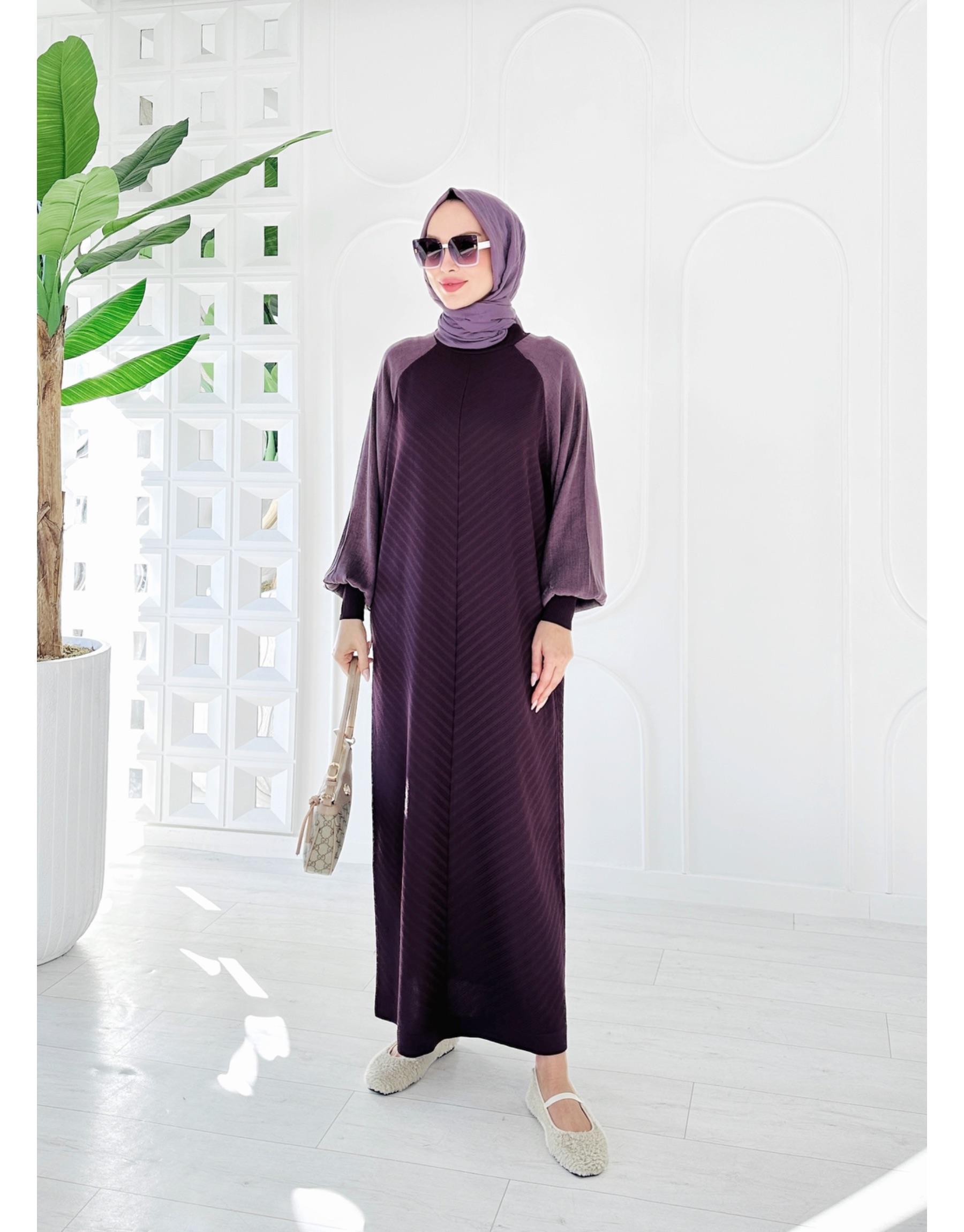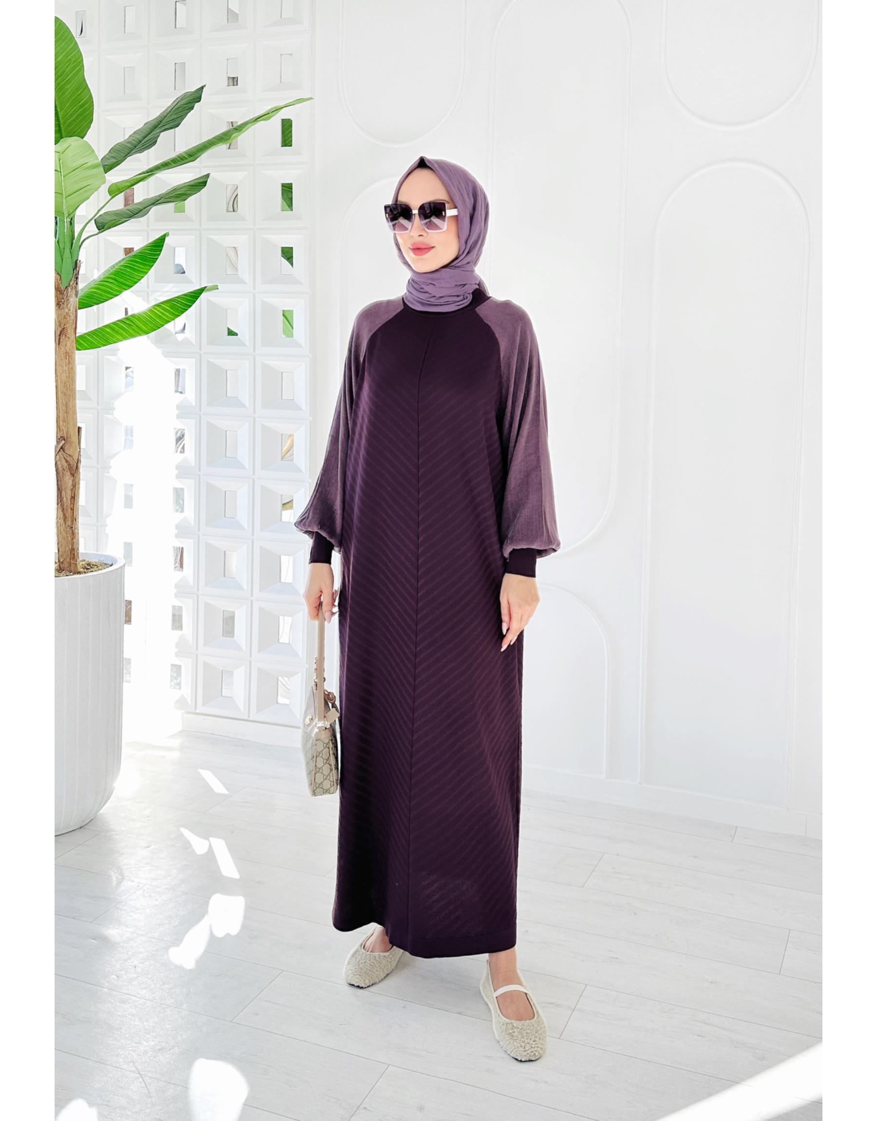 ÇİZGİLİ TRİKO ELBİSE Bordo