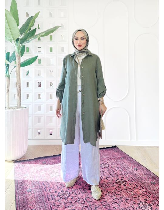 JAVİER İTHAL KETEN ARA BOY GÖMLEK Haki