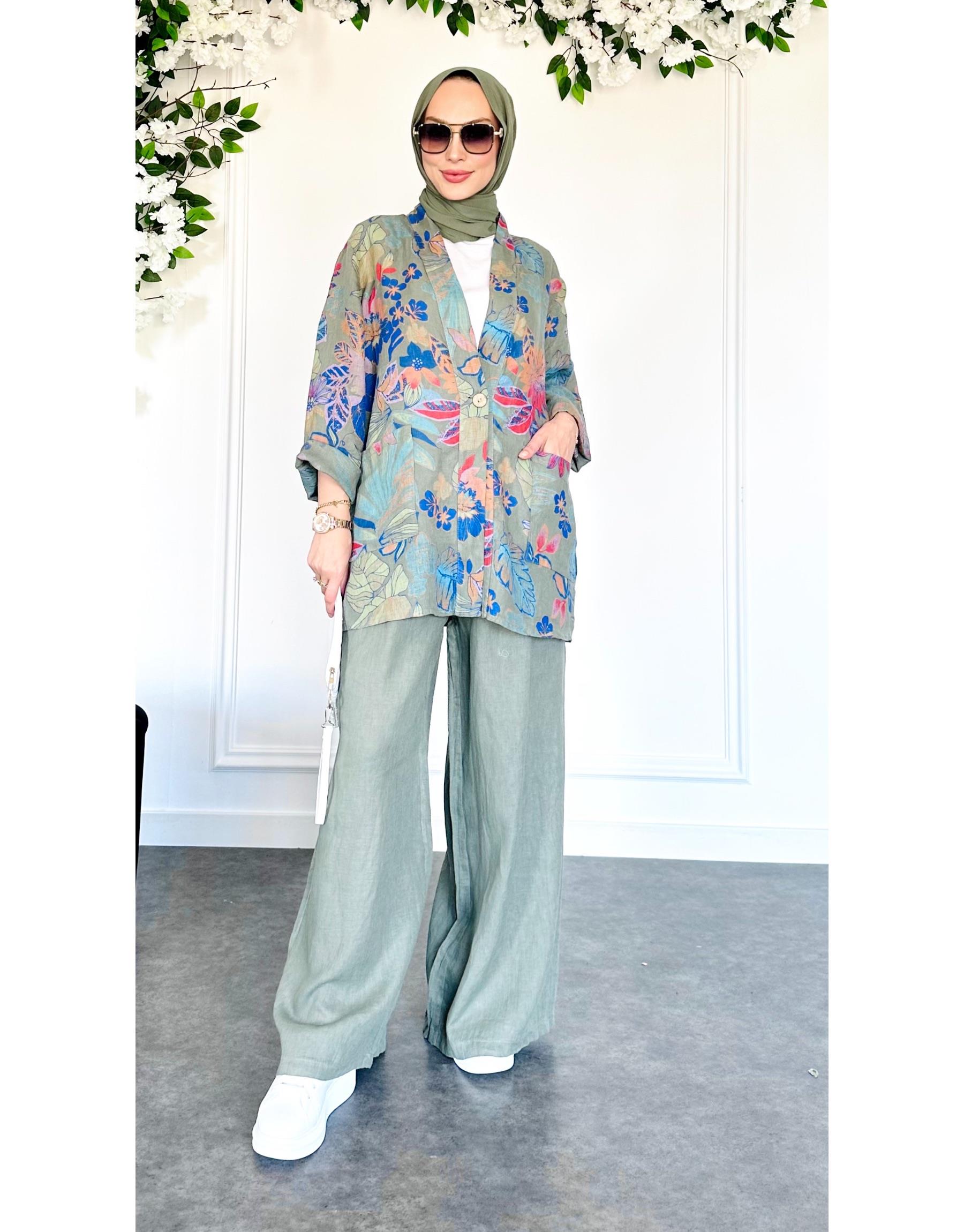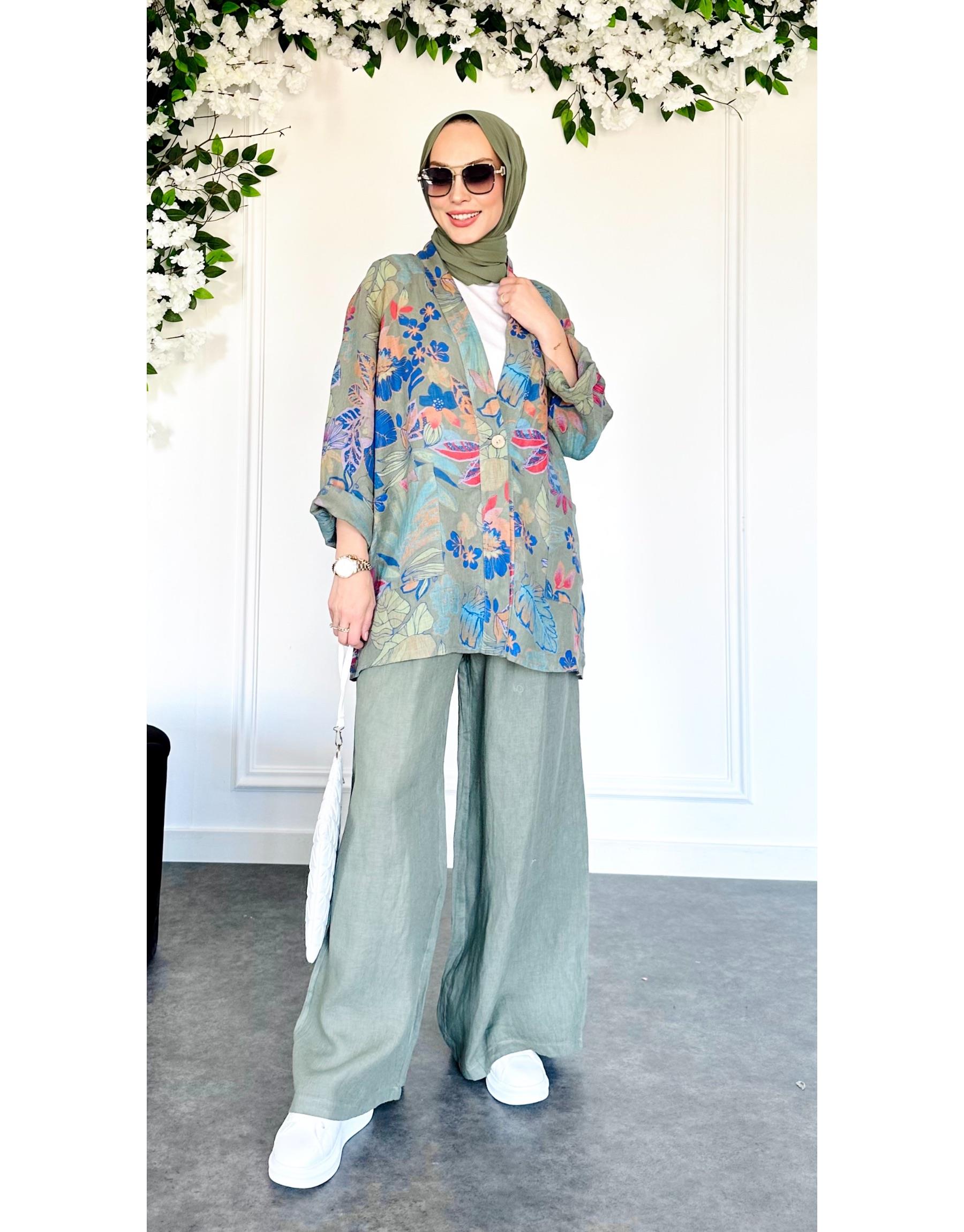 AURA İTHAL KISA CEKETLİ KETEN TAKIM Mavi