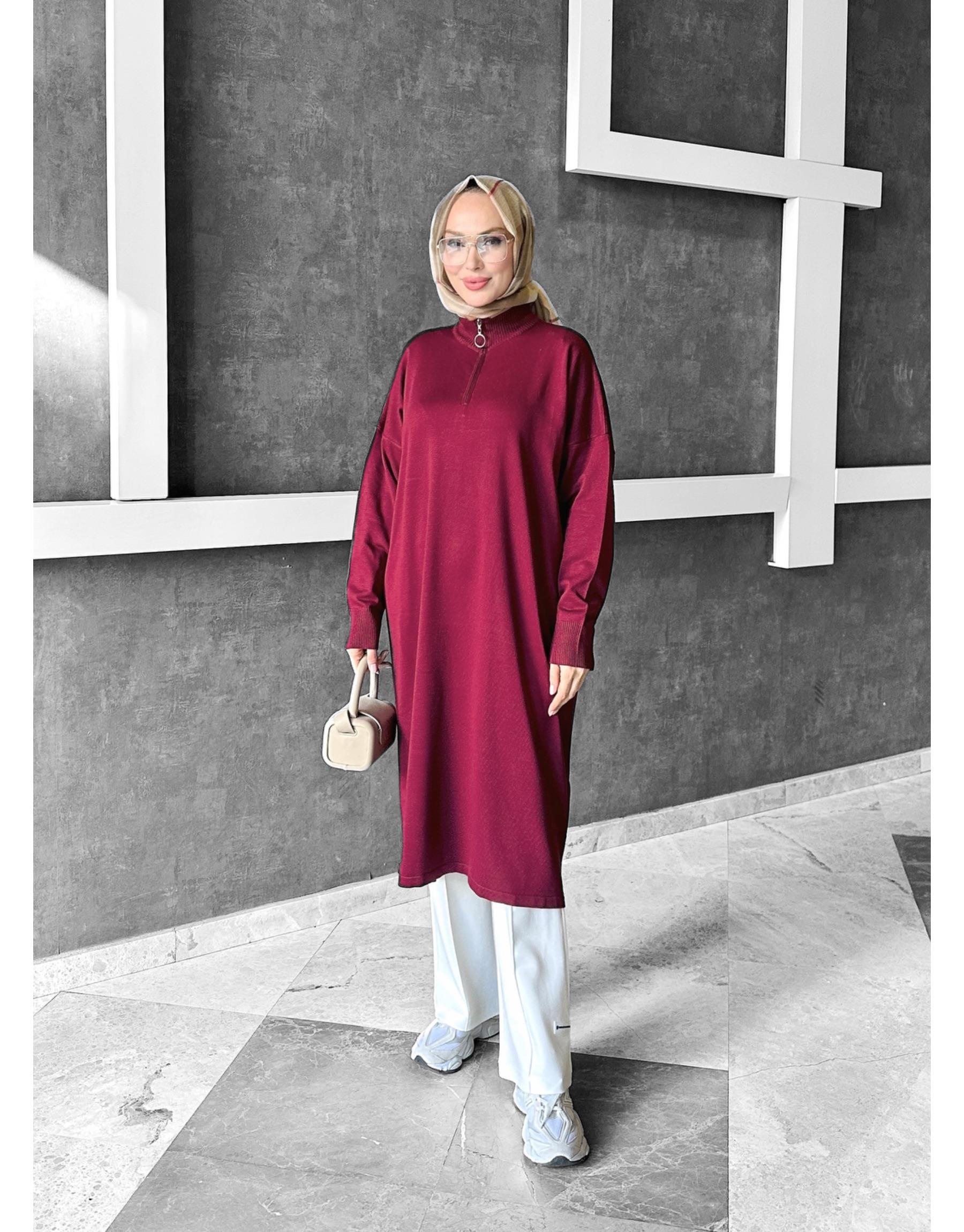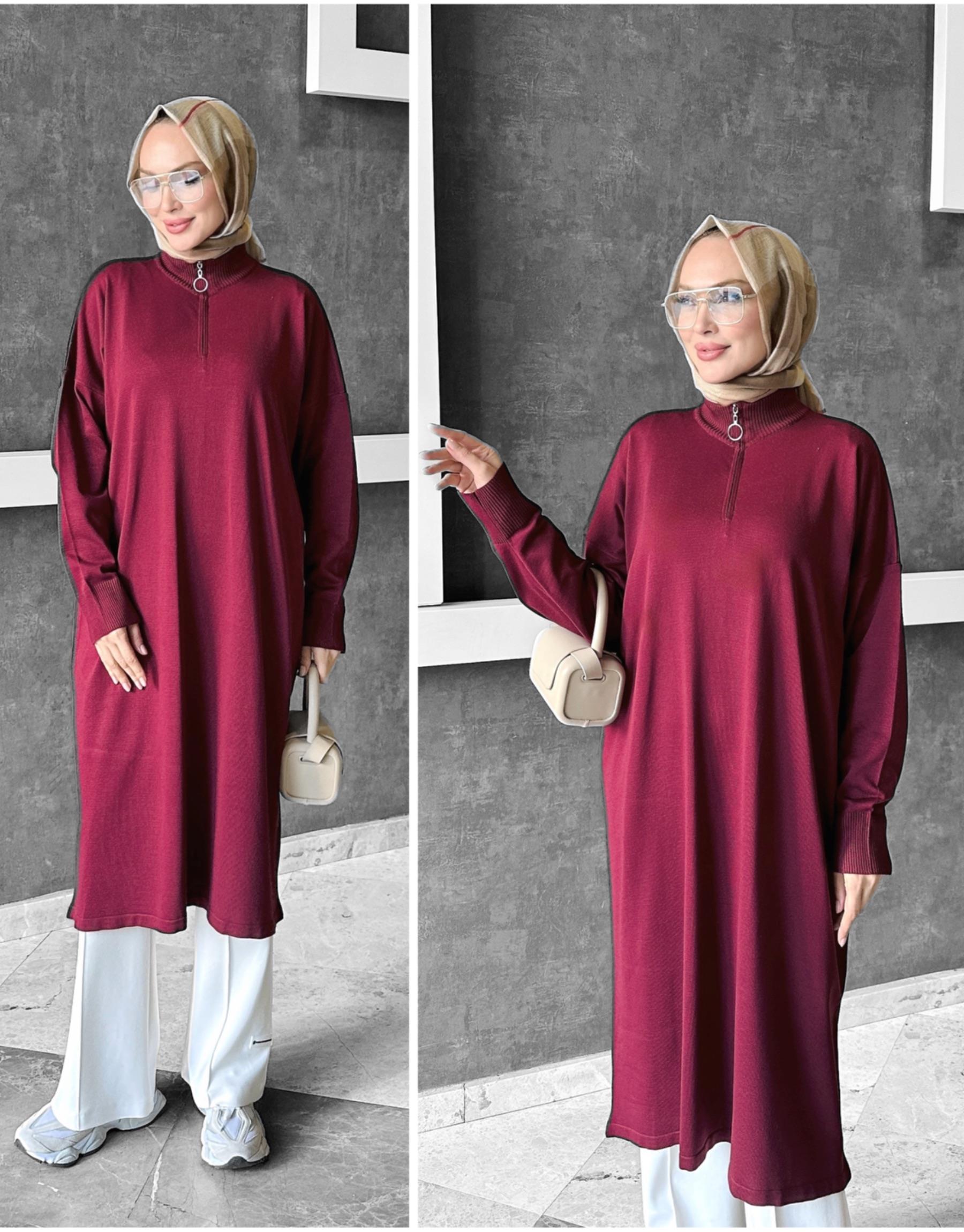 NIGHT YAKASI FERMUARLI MERSERİZE DİZ ALTI TUNİK | TRİKOLAR Modelleri