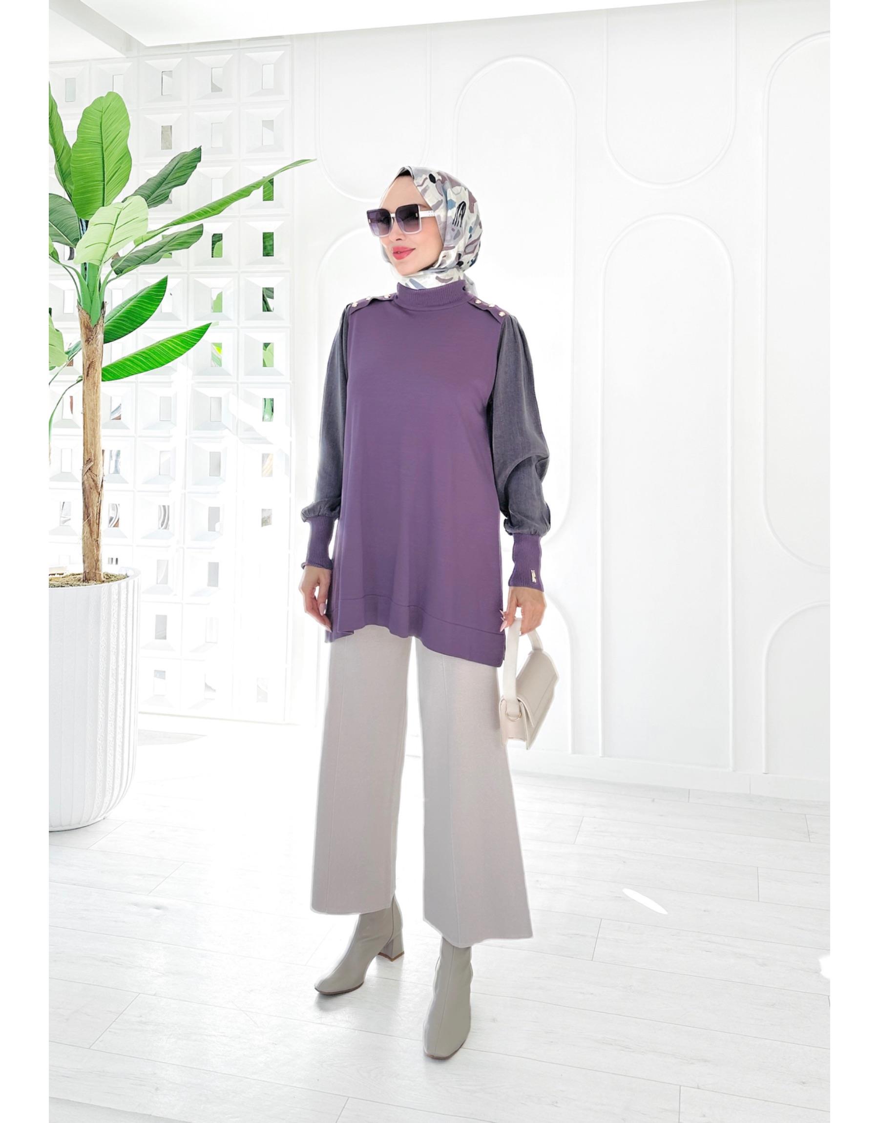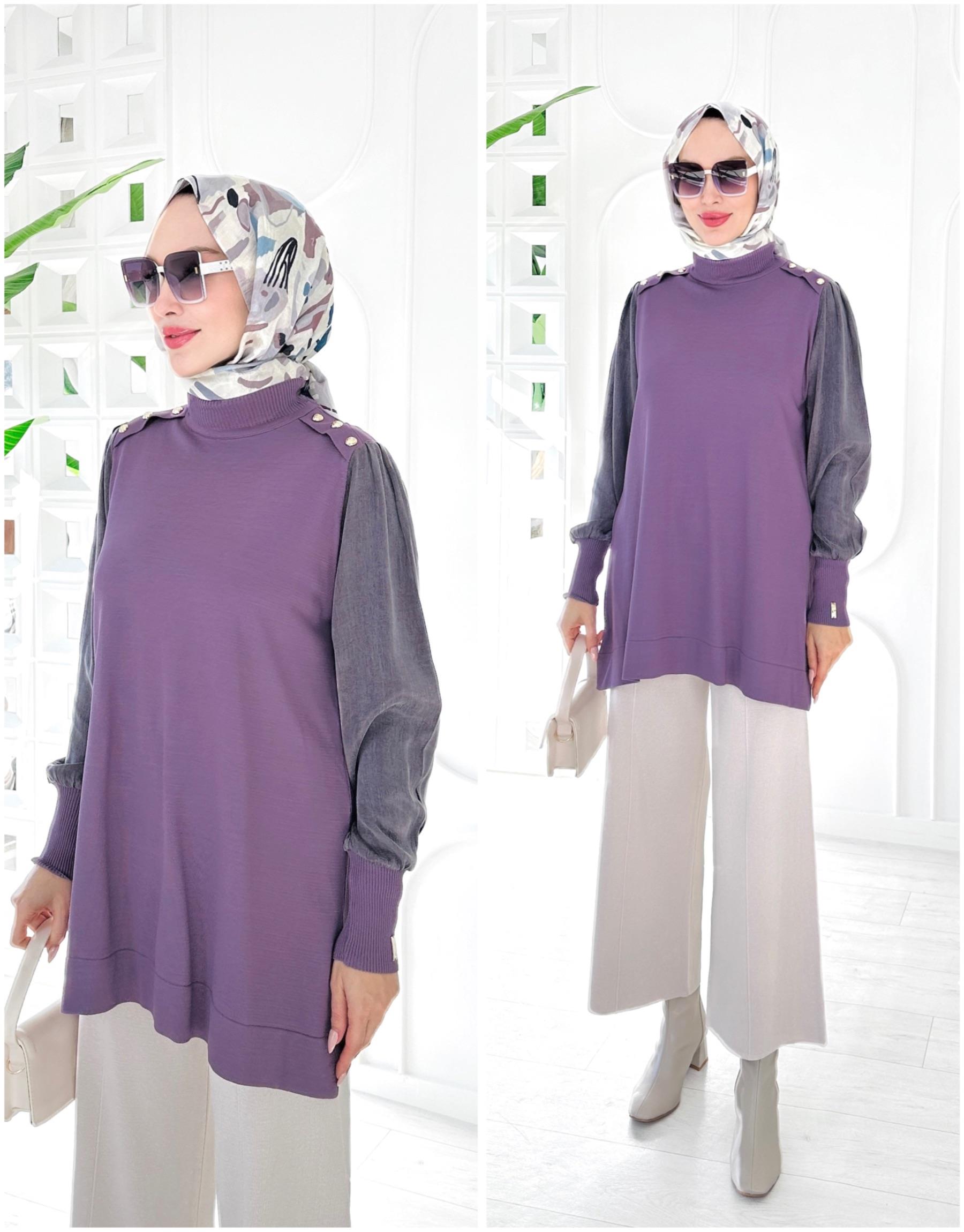 SENTOR OMUZ DÜĞMELİ KOLLAR KUPRA MERSERİZE TUNİK | TRİKOLAR Modelleri